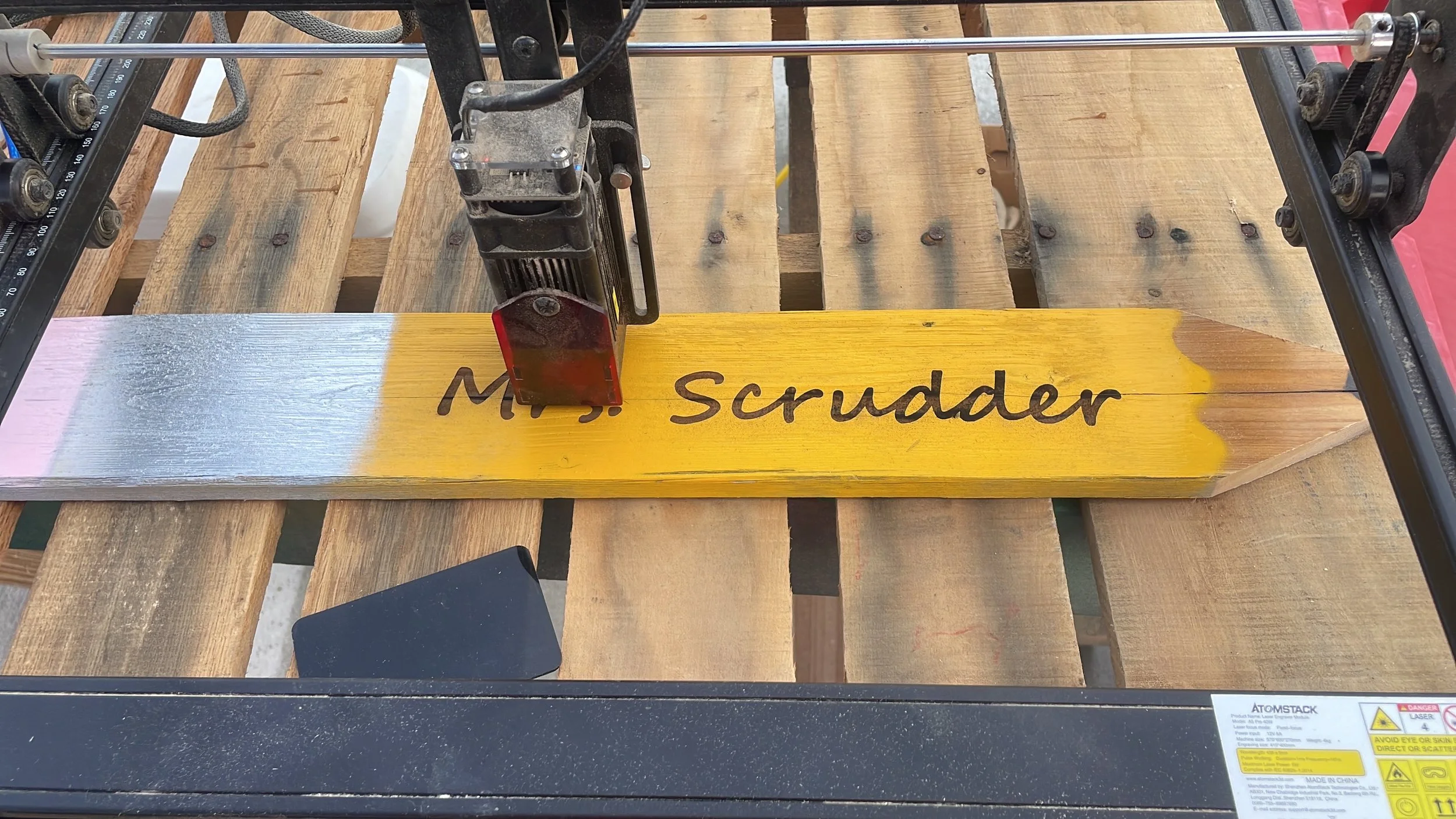 Please specify preference of right or left handed lettering (Mrs. Scrudder shown as left handed lasering)